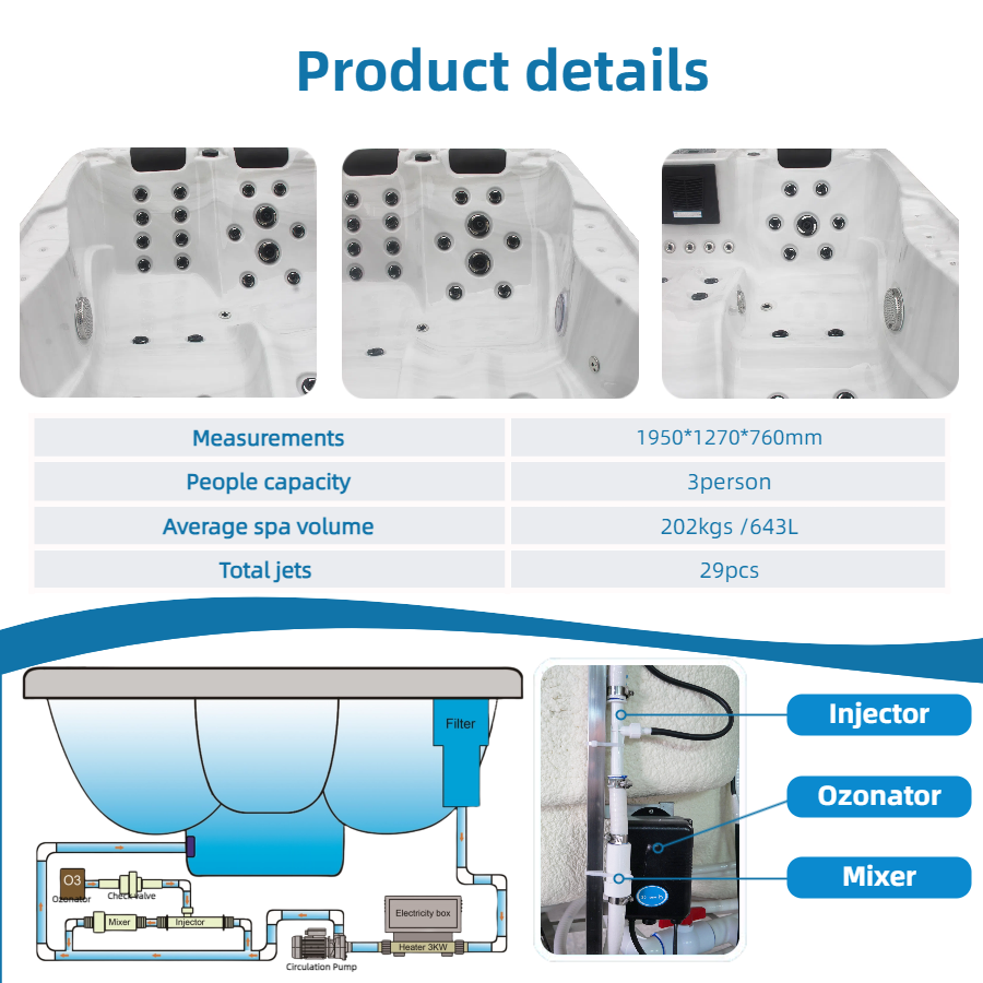 El Cheap Wholesale High Quality 3 Person Garden Hotel Spa Hot Tub strikes the perfect balance between affordability and advanced features. With a growing market for compact luxury spas, distributors can leverage this product to increase profitability, attract diverse customer segments, and build a strong reputation in the wellness and hospitality industry.