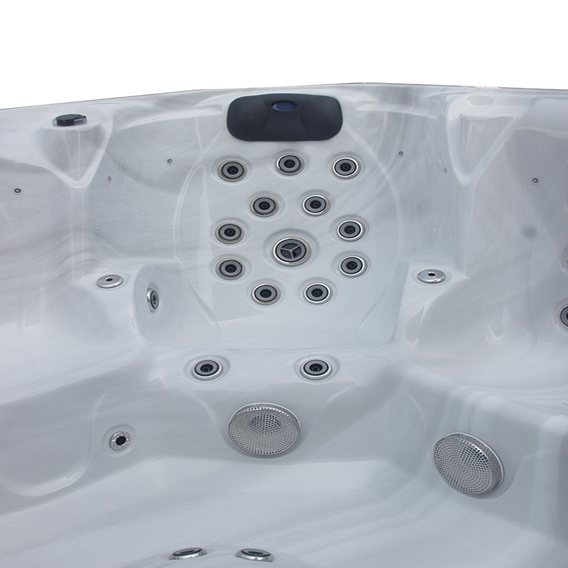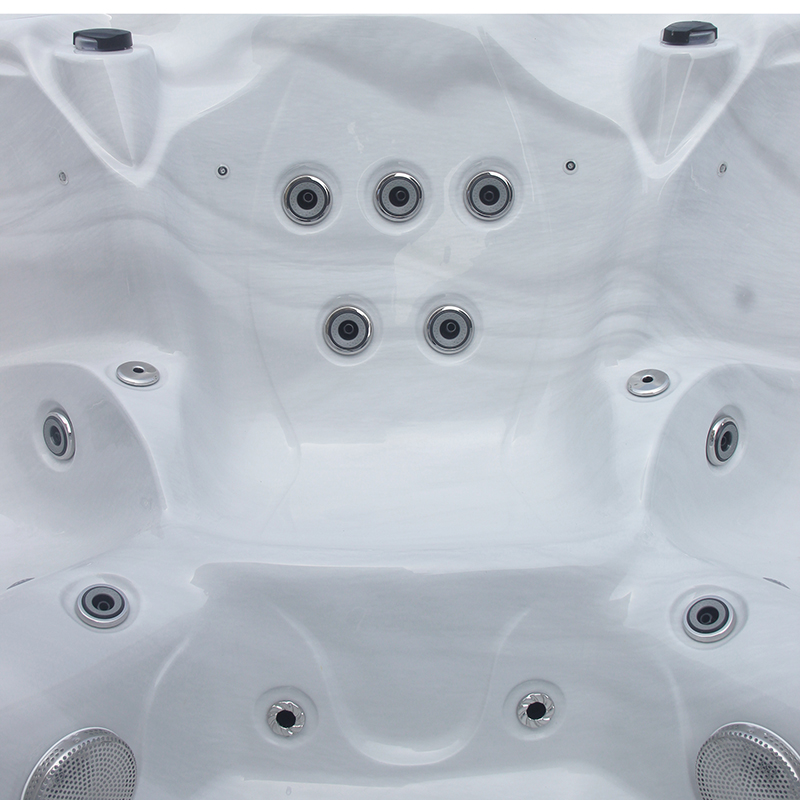For wholesalers, distributors, and commercial spa centers seeking a premium addition to their product lineup, the Large Size Balboa 7-Person Outdoor Hot Tubs With LED Lights stand out as a top-tier choice. This hot tub, crafted with a spacious square design, effortlessly accommodates up to seven individuals, making it perfect for family retreats, social gatherings, or upscale spa experiences. The elegant exterior features a sleek, dark wood-grain finish that complements any outdoor setting, from luxurious villa backyards to high-end resort gardens. The interior boasts a pristine white marble acrylic surface, offering a sophisticated aesthetic that enhances its appeal to discerning clients. This design not only elevates the visual appeal but also ensures durability, addressing the common concern of wear and tear in outdoor environments. With its generous dimensions, this 7-Person Outdoor Hot Tubsb provides ample seating, ensuring every user enjoys a comfortable and immersive soak.