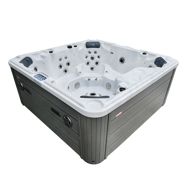For wholesalers, distributors, and commercial spa centers looking to enhance their offerings with an affordable yet premium product, the Low Cost Wholesale Hotels Villas 7-Person Outdoor Spa Hot Tub is an excellent choice. This hot tub, depicted in the provided image, showcases a spacious square layout designed to comfortably seat up to seven people, making it ideal for hotel suites, villa retreats, or bustling spa facilities. The exterior features a modern gray wood-grain finish that blends seamlessly with outdoor landscapes, while the white acrylic interior provides a clean, inviting look that appeals to upscale clientele. Its robust construction addresses the common concern of durability in outdoor settings, ensuring it withstands diverse weather conditions. The ergonomic seating arrangement, complete with headrests and armrests, ensures every user enjoys a relaxing experience, positioning this 7-Person Outdoor Spa Hot Tub as a versatile addition to your inventory.
