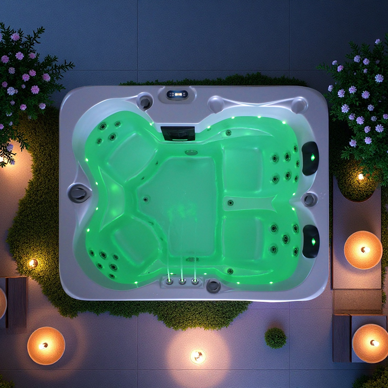 The Small Outdoor Spa 4 Man Hot Tub features customizable LED lighting that helps set the perfect mood for relaxation. Whether it’s for a soothing soak in the evening or a more vibrant atmosphere for a social gathering, the LED lights can be adjusted to different colors and brightness levels. This feature not only enhances the ambiance of the spa but also adds to the aesthetic appeal of the surrounding area. For commercial spas or hotels, the lighting can be synchronized with the overall ambiance to create a luxurious, memorable experience for guests.