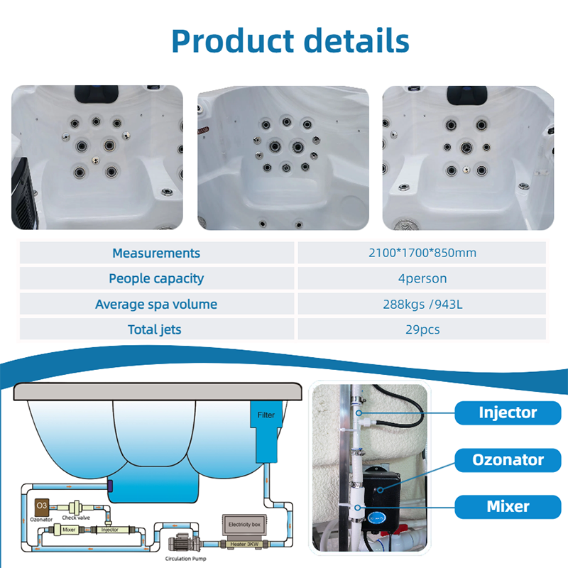 Контактирајте нас данас да бисте сазнали више о Small Outdoor Spa 4 Man Hot Tub with 29-Jet and how it can benefit your business. As a leading supplier of high-quality hot tubs, we are committed to providing reliable products that meet the needs of both residential and commercial clients. Let us help you elevate your product offerings and attract more customers with this exceptional spa solution.