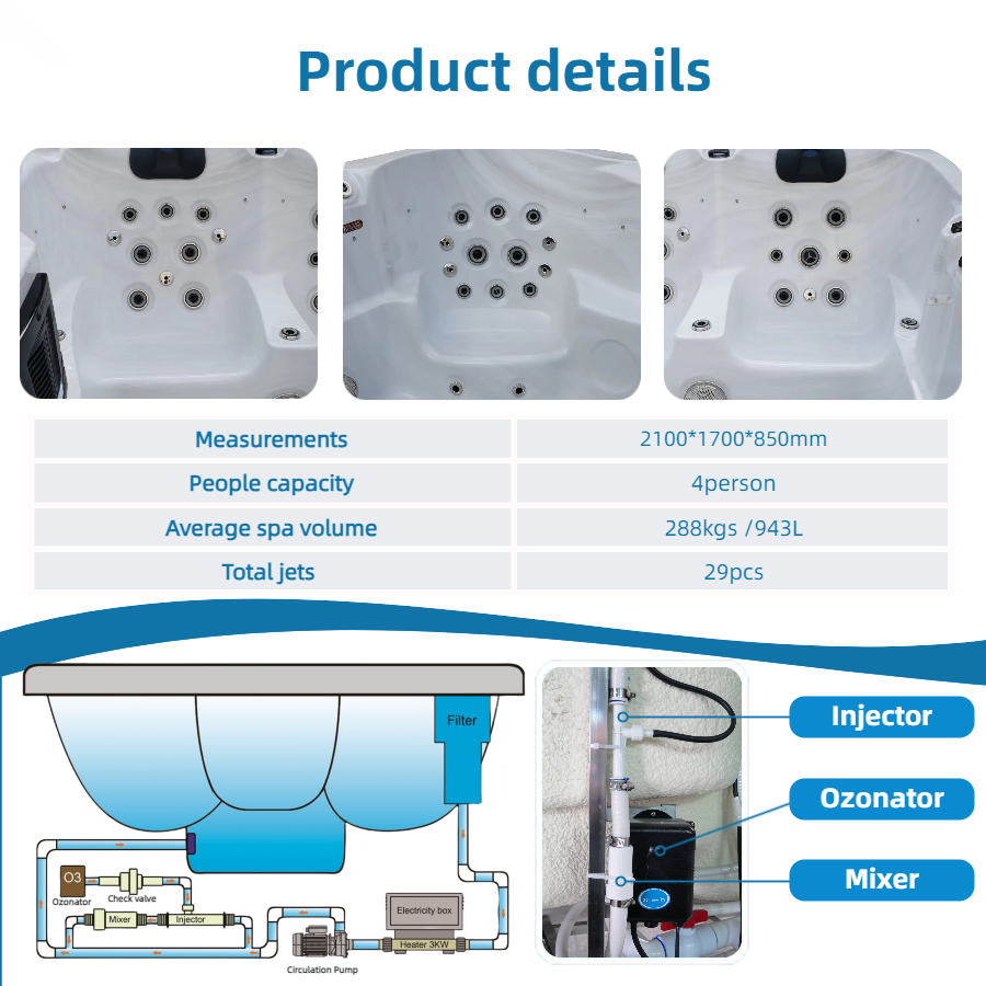If you are a spa owner or hotel operator, you can take advantage of the customizable branding options available for the 2.1m Commercial Spa 4-Person Hot Tub. Custom logos, colors, and other design elements can be added to the tub to match your branding, helping to create a cohesive and immersive guest experience. Whether you run a luxury hotel, a boutique spa, or a wellness center, personalizing the 4-Person Hot Tubwith your logo enhances your brand’s visibility and adds a unique touch to your offerings. Customization makes this hot tub not only a functional piece of equipment but also an essential part of your brand identity.
